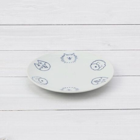 ユーモラスな生き物たちが呉須で描かれた波佐見焼の食器です。