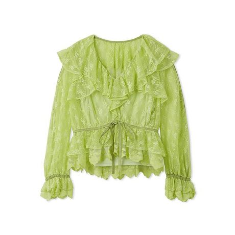 花模様の繊細なレースを贅沢に使用した華やかなトップス。裾と袖口にはチュール刺繍レースを重ね、動くたびに揺れるエレガントな表情をプラスしました。ウエストはサテン生地で切り替えることで、レースとのメリハリをつけつつスタイルアップ効果も。後ろウエストはゴム仕様でフィット感があり、ストレスなく着用いただけます。