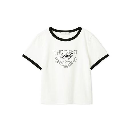 ブランドコンセプトの「THEFIRSTLADY」の文字をメインに、ロゴマークや英文のメッセージを交えてプリントと刺繍で表現。あえて筆記体を入れ込むことで文字の主張を抑え抽象的で着やすいデザインに。