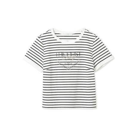 ブランドコンセプトの「THEFIRSTLADY」の文字をメインに、ロゴマークや英文のメッセージを交えてプリントと刺繍で表現。あえて筆記体を入れ込むことで文字の主張を抑え抽象的で着やすいデザインに。