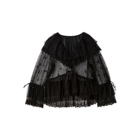 フラワーモチーフの刺繍が優しく浮かぶ、繊細なチュール素材を贅沢に使用したブラウス。