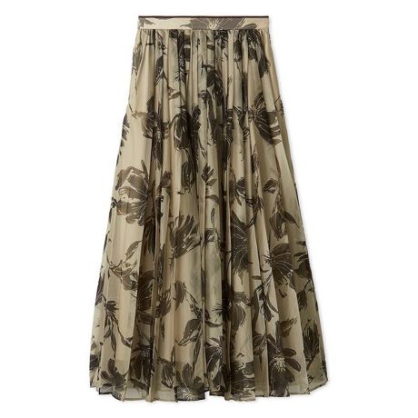 華やかに映えるプリントスカートは、風合いの異なるオーガンジー生地を重ねたスペシャルなデザイン。