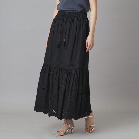 【ウォッシャブル!カットワーク刺繍で軽やかに!クラフト感漂うエンブロイダリースカート】