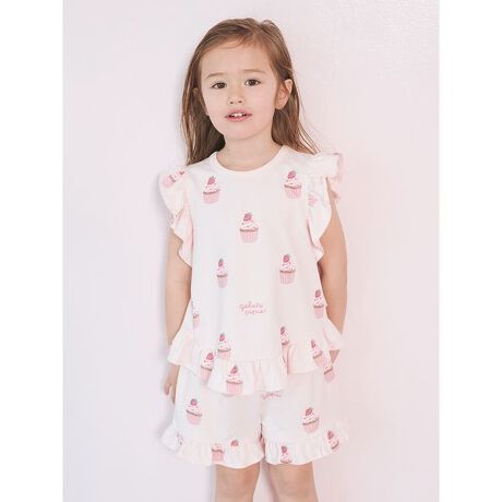 <b>【Aラインが可愛いカップケーキ柄のKIDSフリルTシャツ】</b>