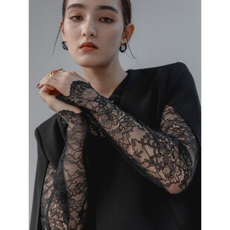 繊細で美しい透け感が特徴のレース素材。薄手でも破れにくく、型崩れしにくいのも魅力。ご自宅でのケアが叶う点もポイントです。