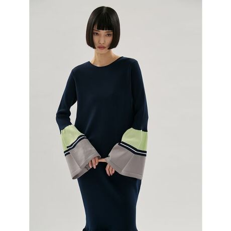 軽やかな着心地のニットワンピースは、裾と袖口に施したフレアディティールが女性らしさを引き立て、動華やかな印象を演出します。