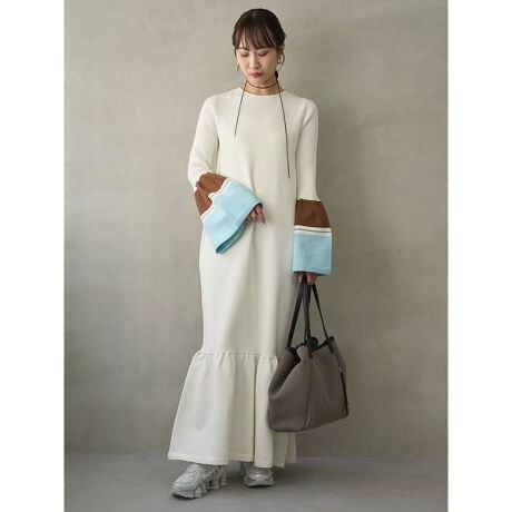軽やかな着心地のニットワンピースは、裾と袖口に施したフレアディティールが女性らしさを引き立て、動華やかな印象を演出します。