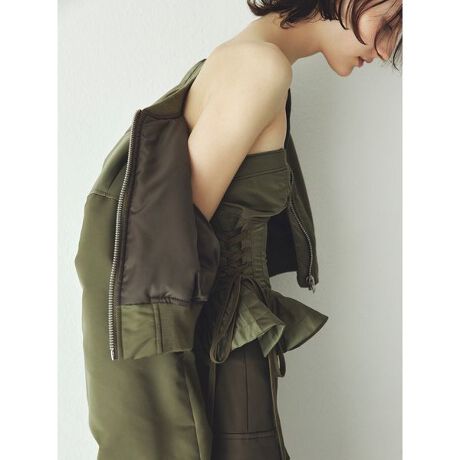ミリタリーテイストのビスチェにレースアップディテールを施しました。