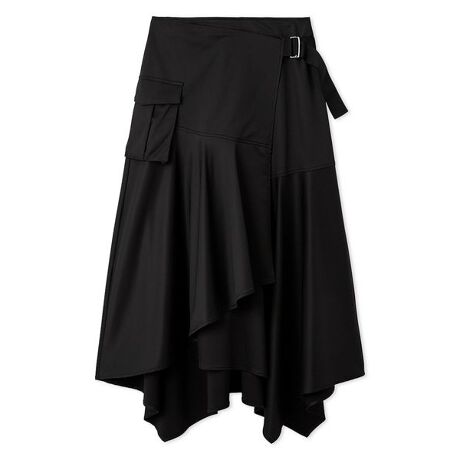 カーゴポケットとサイドベルトでミリタリー要素を取り入れたトレンドライクなスカート。