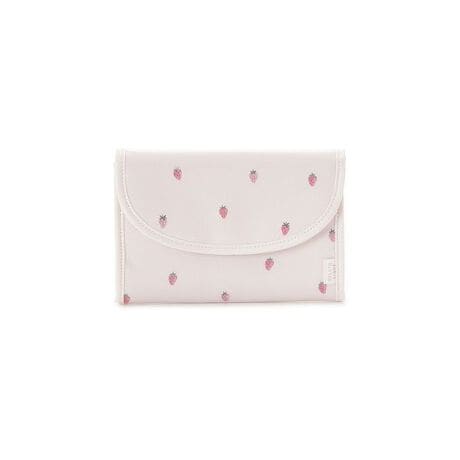 小さなストロベリー柄を散りばめた、ミルキーなカラーリングのママ雑貨シリーズです。小さめで使いやすいSサイズの母子手帳ケースは、中身がぱっと見えて整理しやすいジャバラ式の仕切りがポイント。カードスリットやファスナーポケットも付いており、病院の診察券やお金、母子手帳まで最低限必要なものをコンパクトに収納できます。バッグの中でもかさばりすぎない程良いサイズ感。表地のコットンは水や摩擦に強い加工を施し、裏地は抗菌防臭機能が付いた生地を使用しました。同シリーズのママバッグと合わせてギフトにしたり、KIDS、BABYアイテムとのリンクコーディネートもお楽しみいただけます。