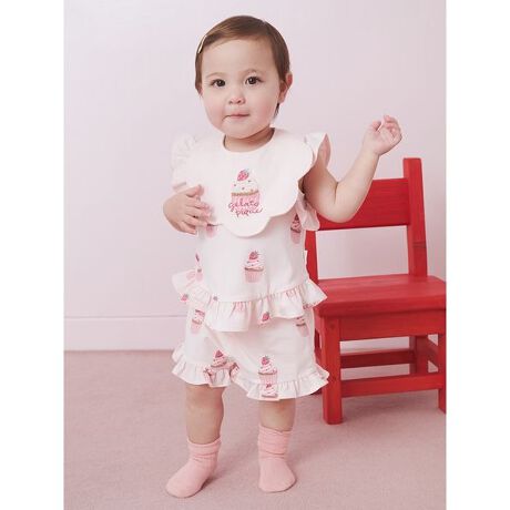 <b>【夏まで楽しめるカップケーキ柄のBABYフリルショートパンツ】</b>
