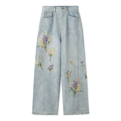 フラワーエンブロイダリーデニムパンツ