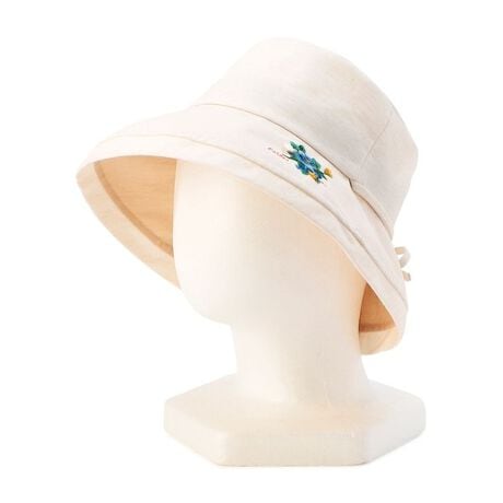 日差しや風が強い日にも重宝する『ブラウローゼン』の帽子です。つば先を切り替えてカーブをつけ、上げ下げで表情の変化が楽しめるように仕立てました。後ろの紐リボンはスリットから下に通して首もとで結ぶこともでき、風の強い日にも安心。大人のカジュアルな服装のワンポイントとしてもおすすめです。