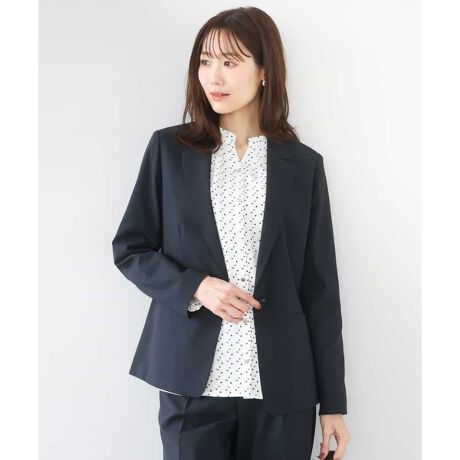 合わせるアイテムを選ばないシンプルなジャケットは毎日の通勤に最適。同素材のパンツを2型ご用意しているので、スーツセットアップとしても着用できます。