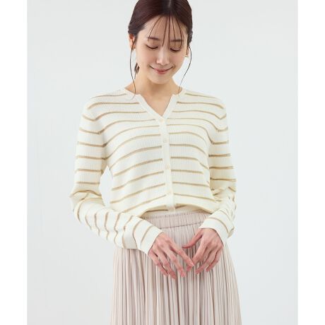 ・コットンベースにラメ糸とフィルム糸を使用した、奥行きのあるボーダーがポイント。