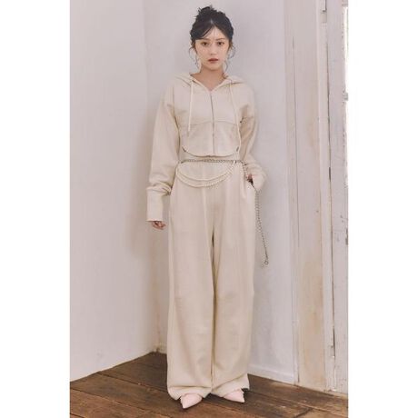 【トレンド感のあるカービーシルエットと繊細なスタッズがポイント】■ポイント柔らかで着心地のいい裏毛のスウェット生地で作成したスウェットパンツがriendaから誕生。やりすぎない絶妙なカーブラインが美脚効果を高め、同素材で作成した110JS580-0551 ビスチェディティールフードスウェットとの相性がばっちりのデザインです。グラデーションのようにちりばめられた繊細なスタッズが動くたびにきらめき、カジュアルでストリートなイメージのスウェットパンツをriendaらしくアップデートしました。■ディテールウエストにはゴムが入っており、さらに内側に紐もプラス膝部分には切り替えとタックをほどこして立体的なパターンでこだわりのシルエットに仕上げています。■スタイリング110JS580-0551 ビスチェディティールフードスウェットとのセットアップが1番のおすすめ!シャツとのコンビもトレンド感のあるスタイリングに◎暖かい日にはTシャツやキャミ合わせもおすすめです。■生地透け感:なし裏 地:なし伸縮性:若干あり光沢感:なし厚 さ:中肉■商品のお気に入り登録お気に入りアイテムの再入荷・在庫1点などの通知を受け取ることができます。[注意事項]※画像の商品はサンプルです。実際の商品と仕様、加工が若干異なる場合があります。※画像の商品は光の照射や角度、お使いのモニター環境により、実物と色味が異なる場合がございます。※着用、お取り扱いの際は、アテンションタグをご確認ください。