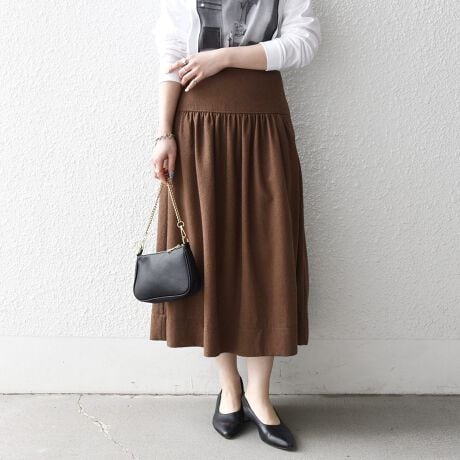 ミディ丈のバランスで、甘くなりすぎず大人っぽく着用できる一枚です。