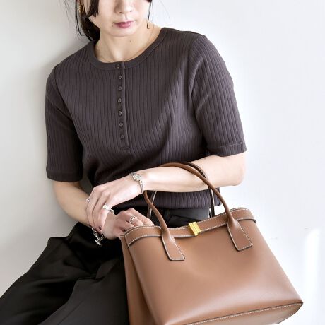 ジャケットやカーディガンのインナーとしても最適なので、通勤スタイルに取り入れやすい一枚。