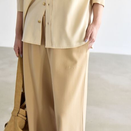 同素材のプルオーバーとセットアップで着こなすと、統一感のある洗練された印象に。