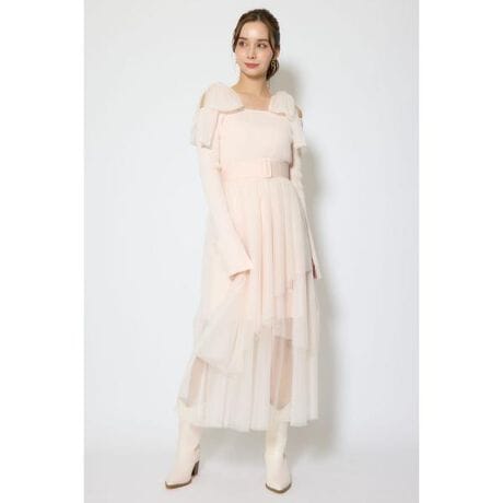 【シアー感の美しいチュールをランダムに重ねたスペシャルなニットドッキングワンピ】■ポイントシアー感の美しいエレガントなソフトチュールを使用してドラマティックに仕上げた、気分を盛り上げるスペシャルなニットワンピース。■ディテールトップ部分は2×2リブで美シルエットへと導きます。スカート部分はランダムヘムのティアードデザインで軽やかに、躍動感を出しました。■スタイリング1枚で華やかに完成する、チュールニットワンピ。ショルダーのチュールは取り外し可能。ベルトもスタイリングにあわせて、有り無しができるのも嬉しいポイントです。足元は2月ならショートブーツか、ロングブーツがお勧め。■生地透け感:チュール/あり、ニット/無し裏 地:あり伸縮性:チュール/無し、ニット/あり光沢感:なし厚 さ:チュール/薄手、ニット/中肉■商品のお気に入り登録お気に入りアイテムの再入荷・在庫1点などの通知を受け取ることができます。[注意事項]※画像の商品はサンプルです。実際の商品と仕様、加工が若干異なる場合があります。※画像の商品は光の照射や角度、お使いのモニター環境により、実物と色味が異なる場合がございます。※着用、お取り扱いの際は、アテンションタグをご確認ください。