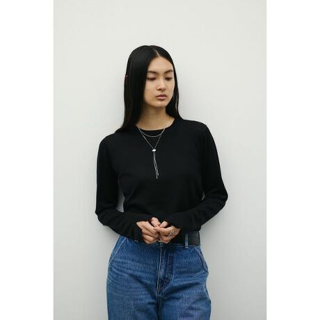 [型番:500JSA70-0791]WHT,ORG,SAX:モデル身長160cm(FREEサイズ着用)BLK:モデル身長175cm(FREEサイズ着用)長め袖と袖口スリットがスタイリングのポイントになるモードかつ上品見えする万能ニット。しなやかで身体馴染みの良いハイゲージ素材を使用着心地抜群です。透け感ややあり、ストレッチあり。【お手入れ方法】手洗い可