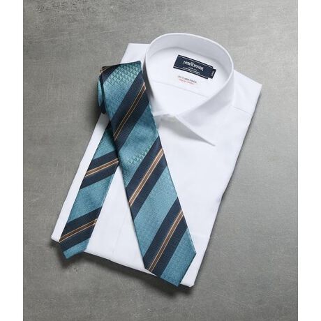 ジオメトリック柄とストライプを組み合わせた、程よくモダンなデザインが特徴。スーツスタイルのアクセントとして取り入れやすく、ビジネスからセミフォーマルまで幅広く活躍します。春夏の軽快な装いにはもちろん、落ち着いた色味のジャケットにも映えるネクタイです。