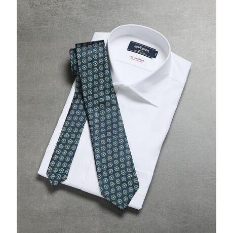 クラシックなフラワーモチーフを細やかに配し、主張しすぎないバランスに仕上げました。無地やベーシックな柄のスーツと好相性で、ビジネスから少し華やかなシーンまで幅広く活躍します。色違いで揃えたくなる、使い勝手の良い一本です。