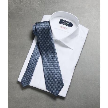 ヘリンボーン調のモチーフを幾何学的に表現した、クラシックとモダンが融合したデザイン。明るさや遊び心、洗練された印象を与えてくれます。無地やベーシックなスーツに合わせることで、色柄の美しさが引き立ち、ビジネスからドレスアップシーンまで幅広く活躍するネクタイです。
