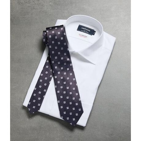 規則正しく配されたスクエアモチーフが、端正でクリーンな印象に。無地ライクに使えるため、柄シャツから無地シャツまで幅広く相性が良く、ネイビースーツやグレースーツを中心に活躍します。