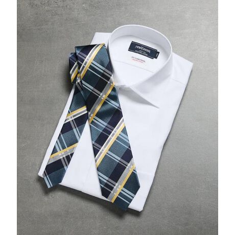 落ち着いたベースカラーに、アクセントとなるカラーを効かせたチェック柄が特徴。スーツやジャケットに自然になじみつつ、コーディネートのポイントとしても活躍します。無地シャツはもちろん、細かな柄シャツとも相性がよく、幅広いビジネスシーンにおすすめです。
