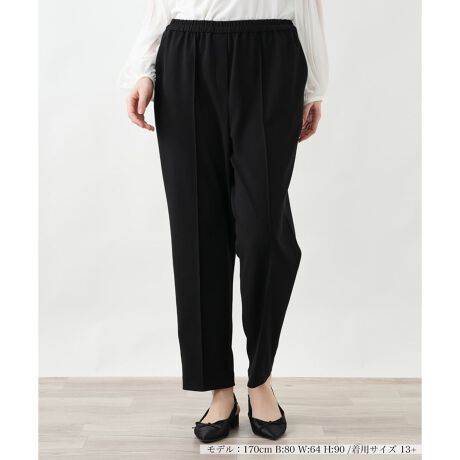 動きやすさと美しいシルエットを両立した、ストレッチ素材のパンツ。ウエストはゴム仕様で、リラックスした穿き心地を叶えます。ご自宅でのお手入れも簡単なため、普段使いからご旅行まで、様々なシーンで活躍します。どんなトップスとも合わせやすいシンプルなデザインで、同素材のブラウスと合わせたセットアップスタイルもおすすめです。