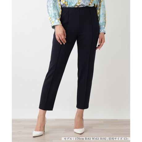 伸縮性に優れた素材を使用し、すっきりとしたスリムシルエットで仕上げたパンツ。ウエストはゴム仕様で、快適な穿き心地ながらも美しいレッグラインを演出します。ご自宅でのお手入れも可能で、日々のお洒落に気軽に取り入れられるのが嬉しいポイント。お客様の声に耳を傾けて生まれた「プラス企画」ならではの、実用性とデザイン性を兼ね備えた一本です。