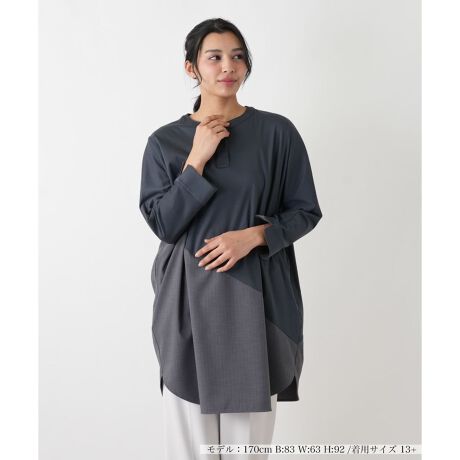 無地ライクながらも表情のある生地で仕立てた、上品な七分袖ブラウスです。お客様の声から生まれた「プラス企画」ならではの、着る人に寄り添ったデザインが魅力。ご自宅でのお手入れも簡単なため、初夏の季節に気兼ねなくお召しいただけます。一枚でさらりと着ても、ジャケットのインナーとしても様になる、着回し力の高い便利なアイテムです。