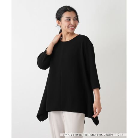 シンプルなクルーネックとすっきりとした七分袖で、着回し力に優れたカットソー。お客様の声に寄り添って作られた「プラス企画」のアイテムです。一枚で着ても、ジャケットやカーディガンのインナーとしても活躍し、ロングシーズンお使いいただけます。ご自宅で簡単にお手入れができるのも、日常使いに嬉しいポイント。ワードローブに一枚あると重宝する、上品なベーシックウェアです。