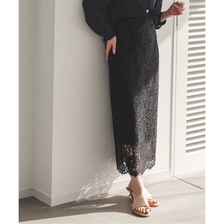 レースを贅沢にあしらったエレガントな雰囲気漂うタイトスカート。