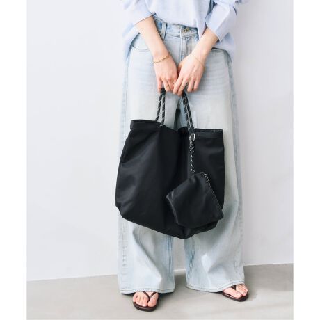 シンプルで洗練されたデザインのポーチ付きトートバッグ。