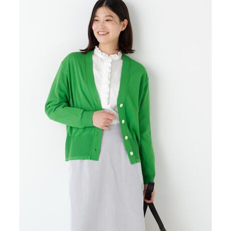Tシャツなどに軽く羽織って様になる1枚。同素材のプルオーバーニットとアンサンブルとしてのスタイリングもおすすめです。