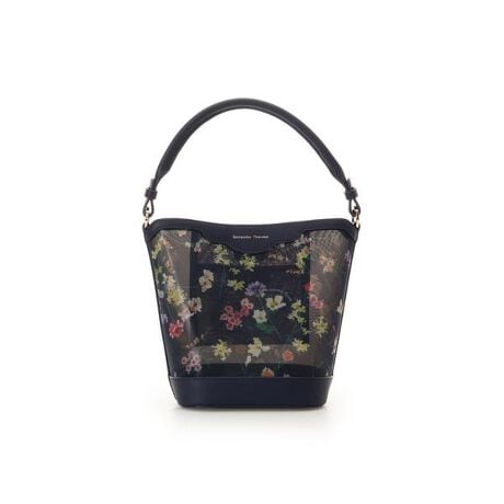 ◇Samantha Thavasa(サマンサタバサ)のフラワーモチーフチュール ワンハンドルバッグ華やかなフラワー柄がポイントのバケツ型チュールハンドバッグ。 【デザイン】毎年大人気のフラワー柄のチュールバッグから今回は繊細なフラワー柄をあしらったデザインが登場。チュールとビニール素材を重ねた構造になっていて、ほど良い透け感と美しいフラワー柄が上品な印象に仕上げています。バケツ型のフォルムでざっくりと荷物の収納ができ、付属にはショルダーベルトがついてくるのでシーンによって使い分けができます。 【素材】 フラワー柄をプリントしたポリエステル素材を使用しています。 【サイズ感】 折り財布…〇、長財布…×、350mlボトル…△(マグネットを留めなければ収納可能)