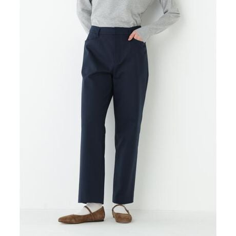 生地のストレッチを活かしたきれい目の細みストレートパンツです。膝下をストレートにしたシンプルながらこだわりの効いた1枚。ウエストはあえて、フロントボタンがないすっきりとしたデザインに仕上げました。