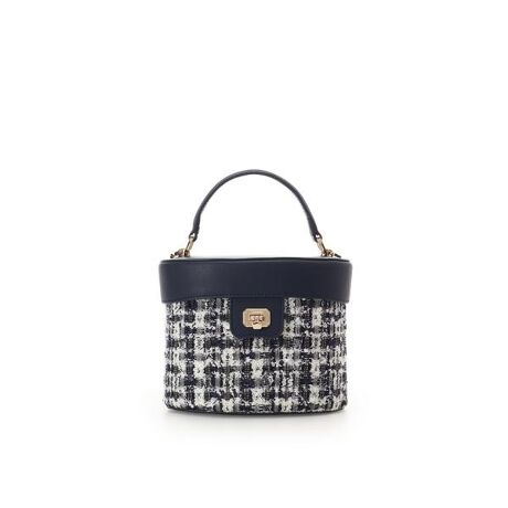 ◇Samantha Thavasa(サマンサタバサ)のオリジナル金具ツイード バニティバッグ華やかな色合いのツイードのバニティバッグ。【デザイン】国内で丁寧に織り上げたワンランク上のツイード生地を使用した、高級感が溢れるシリーズ。素材そのものの質感や上品さを楽しんでもらえるように、ツイードの生地選びや縫製にこだわり誕生したアイテムです。見る角度でキラキラと華麗に輝き、オリジナルのクラシカルなデザインの金具とも相性抜群。内装にはポケットを完備しており、付属にショルダーベルトがついているのでシーンによって使い分けもできます。カジュアルなパンツスタイルやエレガントなスカートスタイルにも合わせやすく、様々なコーディネートに華やかさをプラスしてくれるアイテムです。【素材】国産のツイード生地を使用しています。【サイズ感】長財布…×、折財布…〇、スマートフォン…△(大きいサイズは×)