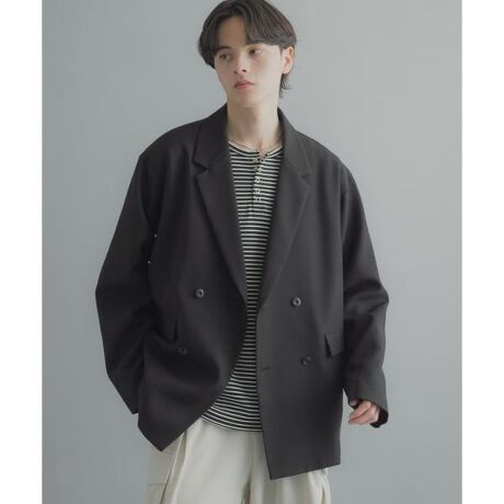 ・カッチリしすぎず、デイリーユースで着られるカジュアルなデザインが魅力。ダブルブレストの重厚感を程よく崩したシルエットで、こなれた印象を演出します。