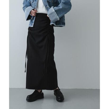 繊細なシャーリング使いが目を惹く、デザインタイトスカートです。フロントにあしらわれたギャザーが、気になるウエストラインを自然にカバーしつつ、立体感のある洗練された表情を生み出します。素材には、これからの季節に嬉しいサラッとした質感の生地を採用。春の光に映える柔らかなチェック柄が、いつものコーディネートに程よい甘さと華やかさを添えてくれます。