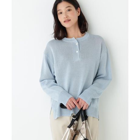 スキッパータイプの襟ぐりが特徴のゆったりサイズのプルオーバー。少し長め丈でリラックス感のあるデザインです。