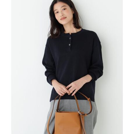 スキッパータイプの襟ぐりが特徴のゆったりサイズのプルオーバー。少し長め丈でリラックス感のあるデザインです。