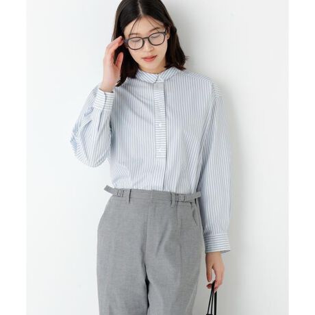 ニットや羽織のインでストライプ柄を利かせたり、暖かくなったら1枚着として活躍するブラウスです。