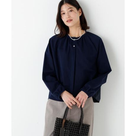 スカートにもパンツにも合う万能ブラウス。羽織ブラウスとしても便利でカーディガンのように軽く羽織ったスタイリングもおしゃれです。