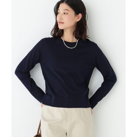 コンパクトなデザインで、スカートやパンツどちらにも合わせやすいベーシックトップスです。同素材のVネックカーディガンとアンサンブルとしてのスタイリングもおすすめです。