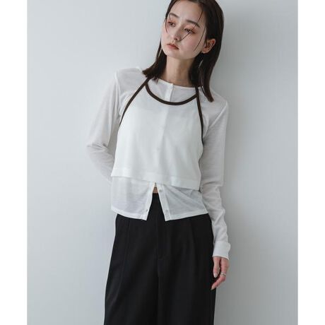 【技ありレイヤード。配色ラインが映えるホルターキャミアンサンブル】