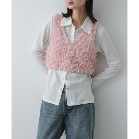 【表情豊かなレイヤード。前後2WAY・リボンヤーンクロップドベスト】