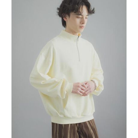 ・トレンドのハーフジップデザインを採用。ジップの開閉によって首元のニュアンスを変えられ、一枚着としてはもちろん、ゆとりのあるシルエットでレイヤードスタイルに最適な仕上がりになっています。